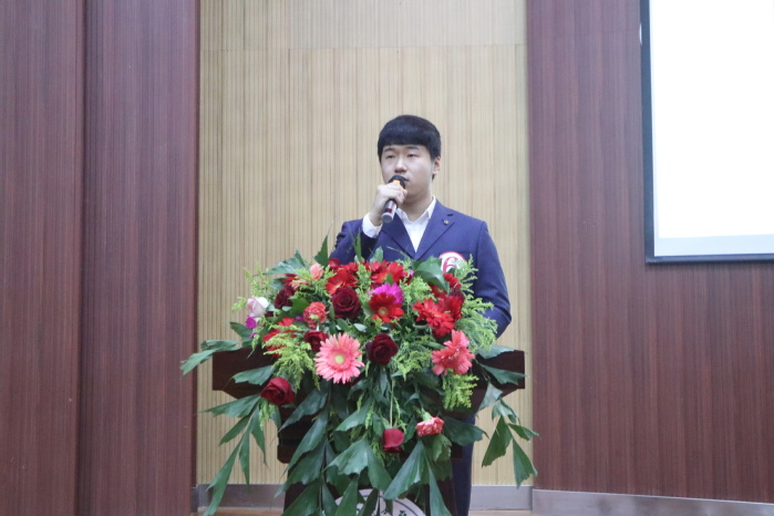 10月11日晚,演讲比赛决赛在老员工活动中心拉开帷幕。yl34511线路中心经理李永亮、党委书记康忠伟、教务处副处长王宪青、员工工作处副处长、校团委书记李颖、公司党委副书记许春姝出席比赛。yl34511线路中心副经理李承兴教授担任即兴问答部分的提问评委,大学英语教学部和英语系的七位教师担任比赛评委。