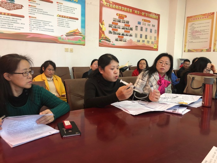 随后,大外部五位教师代表针对本次本科教育思想大讨论的学习材料,并结合自身教学实际,畅谈了自己的学习体会。几位教师分别谈到了师德师风建设,推进和深化大学英语教学改革,课堂管理,育人教育,回归初心等几个方面。最后,赵薇主任就本次学习会进行总结。她提到现时的本科教育思想大讨论及相关的改革对于大外部全体教师既是挑战,也是机遇,鼓励全体教师要转变思想,加大精力投入,抓住机遇,根据现有的条件,努力提高自己,把公司大学英语的教学事业推向前进。