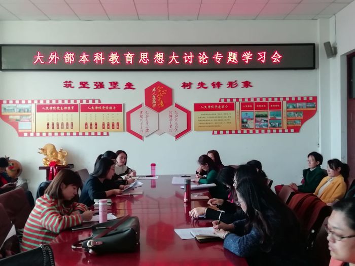 10月24日,大外部在主楼1027举行了本科教育思想大讨论专题学习会。会上,大外部主任赵薇老师解读了《教育部关于加快建设高水平教育全面提高人才培养能力的意见(高教40条)》。意见主要围绕着全面提高人才培养能力这个核心点,提出加快形成高水平人才培养体系及培养德智体美全面发展的社会主义建设者和接班人的意见;强调了把思想政治教育贯穿高水平本科教育全过程,全面提高教师教书育人能力。yl34511线路中心教工第三党支部书记,大外部教师高丹老师宣读了2018年6月21日教育部部长陈宝生同志在新时代全国高等学校本科教育工作会议上的讲话。这次讲话的主题是“坚持以本为本,推进四个回归,建设中国特色、世界水平的一流本科教育”。高丹老师提纲挈领地带领与会教师共同回顾了陈宝生部长这次讲话的内容。其中,特别强调了高等教育的四个回归,即回归常识、回归本分、回归初心和回归梦想,以及在本科教育阶段对员工适当增负的问题。