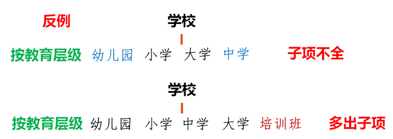 注意:1.母项的外延与子项的全部外延之和正相一致