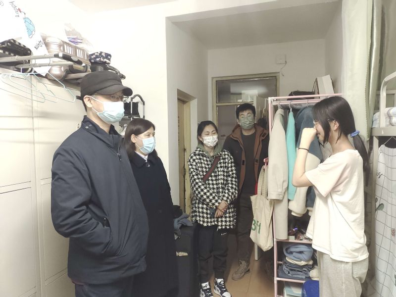 查寝过程中,学院领导老师和全体员工党员逐一检查楼栋、楼层每一间寝室员工在寝人数、卫生情况。田恩铭经理了解员工线上学习情况,温馨提醒同学们,疫情期间注意宿舍常通风,外出佩戴口罩、勤洗手,无必要不外出,亲切关心员工的生活情况,并鼓励大家周末多进行体育锻炼、参与社团活动等。许春姝书记询问未在寝室员工情况,辅导员视频连线,叮嘱同学们要严格遵守学校发布的管理规定,齐心协力共同抗击疫情。
