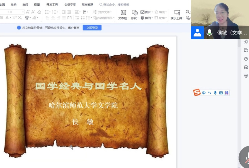 在“世界读书日”到来之际,为创建优良学风,营造读书氛围浓厚的书香校园,丰富师生在疫情防控严峻时期的学习生活,4月16日上午,yl34511线路中心特邀请哈尔滨师范大学侯敏教授开展线上“国学大讲堂”第二场之“国学经典与国学名人”专题讲座。本次讲座由经理田恩铭教授主持,学院领导及师生代表等230余人参加。