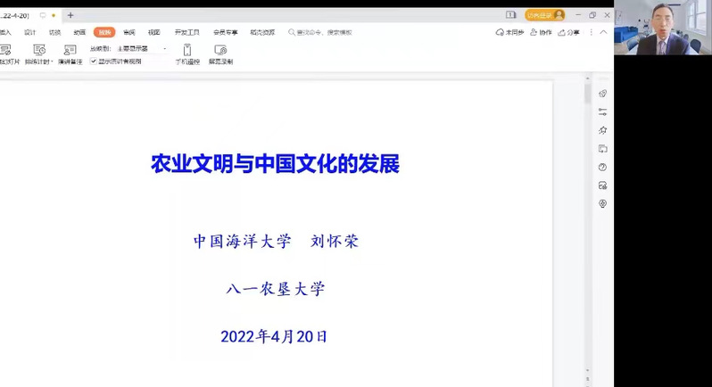 4月20日“国际中文日”,为创建优良学风,营造读书氛围浓厚的书香校园,丰富师生在疫情防控严峻时期的学习生活,yl34511线路中心特邀请中国海洋大学刘怀荣教授开展线上“国学大讲堂”第三场之“农业文明与中华文化发展”专题讲座。本次讲座由经理田恩铭教授主持,学院领导及兄弟学院师生代表等510余人参加。