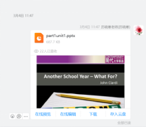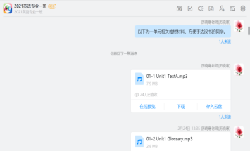 《综合英语2》的教学平台采用钉钉直播课,结合钉钉写作训练群、QQ专业课班级群和腾讯会议等进行补充。首先我在钉钉群发布周教学目标课程的相关网络资源,预留问题,引导员工思考和寻求答案。综合英语课程对英语词汇的掌握要求较高,我在课前将相关音频与电子教材上传至群文件,也方便了未返校员工学习使用。