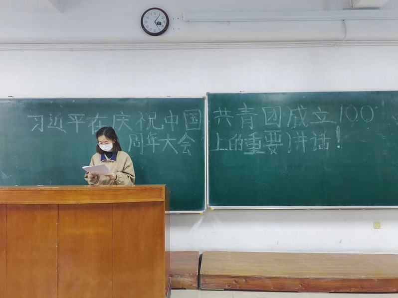 活动中,同学们学习了《习近平总书记在庆祝中国共产主义青年团成立100周年大会讲话》文本,结合习近平总书记给予青年人亲切的寄语:“青春孕育无限希望,青年创造美好明天。一个民族只有寄望青春、永葆青春,才能兴旺发达”展开讨论交流。青年的命运,从来都同时代紧密相连。坚定不移跟党走,为党和人民奋斗,是共青团的初心使命,时代各有不同,青春一脉相承。“人生万事须自为,跬步江山即寥廓”,广大青年人需要追求进步,“追求进步”是青年最宝贵的特质,也是党和人民最殷切的希望。共青团员要认真接受政治训练、加强政治锻造、追求政治进步,积极向党组织靠拢,以成长为一名合格的共产党员为目标、为光荣。