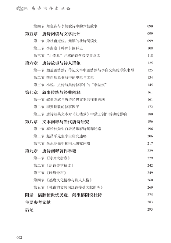 田恩铭教授新著《唐诗阐释史摭论》是他多年治唐诗的小结,是一部以唐诗阐释史研究为主题的著作。著作选取唐代文化背景、诗人审美心理、诗人形象、文学传统等四个方面展开个案研究,构成了唐诗阐释史的不同面相。全书分为八章,构成三个单元。第一章“盛唐气象与唐诗阐释”、第二章“平淮西与唐诗经典的生成”为一个单元,主要阐释背景研究,以唐诗文本为中心,围绕“盛唐气象”“元和中兴”等主题,分别就《忆旧游寄谯郡元参军》《忆昔》《琵琶行》阐释史进行考察;第三章“唐诗文本与心灵世界”、第四章“唐诗阅读与文学批评”、第五章“唐诗故事与诗人形象”、第六章“叙事传统与唐诗经典”为一个单元,侧重唐诗文本与形象书写研究,主要围绕唐诗文本与心灵世界、文学批评、诗人形象、叙事传统等内容展开研究。第七章“文本阐释与诗人研究”、第八章“唐诗阐释著作导读”为一个单元,针对当代唐诗进行阐释研究,围绕霍松林、赵昌平、尚永亮等唐代诗人的研究成果切入文本阐释与诗人研究主题,从而凸显文本阐释在诗人研究中的核心地位;围绕五种唐诗阐释著作展开论述,进而梳理文化交流、文化背景与文本阐释的关系。