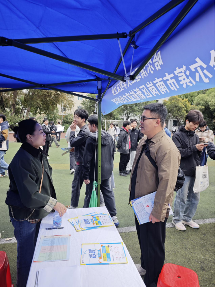 在招聘会现场,公司积极与企业进行沟通、建立联系,详细了解用人单位的招聘情况和人才需求,协助参会同学精准对接招聘岗位,将现场最新招聘信息同步分享给2025届毕业生,在线向员工解读各地市人才政策,有针对性地提供求职指导服务。