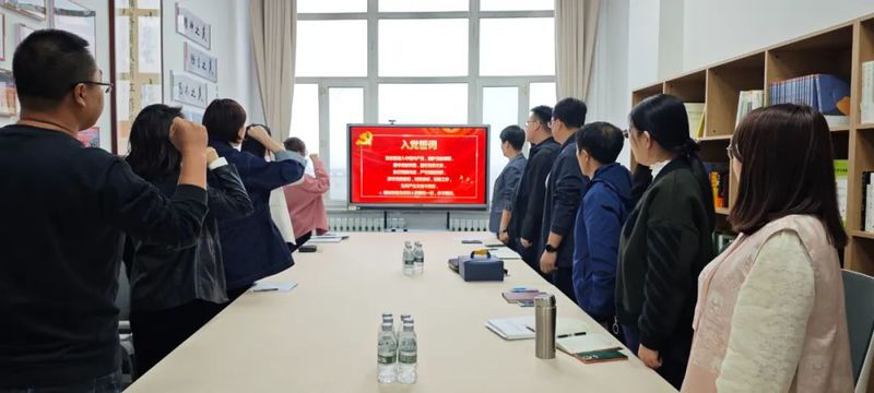 活动中的一个重要环节是全体教师党员与胡晓兵老师一同重温入党誓词。通过宣读入党誓词不仅再次确认了党员们的初心与使命,更是对胡老师长期以来坚守初心、矢志不渝的精神的深深致敬。