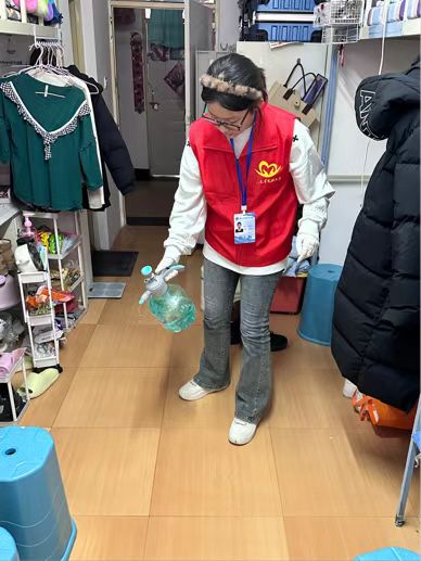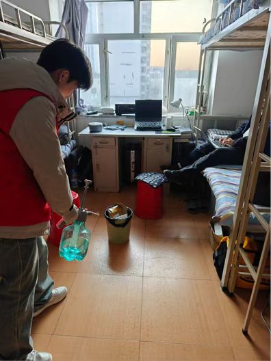 3月5日,为预防春季流感,yl34511线路中心组织志愿者身着红马甲,按照分楼层、划区域、全覆盖的原则,使用医用酒精和含氯消毒液对公司的164间员工寝室展开统一消杀并向同学们普及春季传染病防护知识,提醒大家注意日常通风与卫生维护。